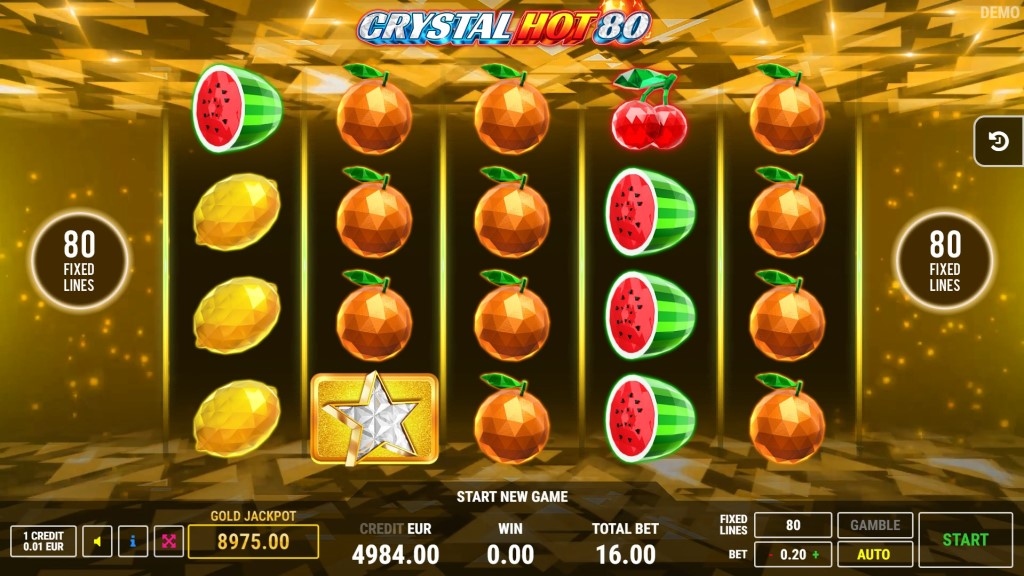 Crystal Hot 80 je video igra koju je Fazi razvio u skladu sa retro izdanjem klasičnih slotova. Veliki broj platnih linija donosi različite vrste dobitka. Međutim, takmičari ih ne mogu dodatno uvećati zbog nedostatka bonus opcija. Sve u svemu, ova igrica sa voćkama doneće uzbuđenje svakom takmičaru i približiti realistično zvuk slot mašina kakav je nekad bio pre pojave modernih tehnologija. Takođe, iz Fazija su se potrudili da grafičkim rešenjima još više poboljšaju vizuelni doživljaj imajući u vidu kristalni oblih voćkica. Svakako ćete se zabaviti!